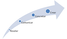 Este proceso se lleva a cabo en cuatro etapas: revelar, comunicar, concretar y crear.